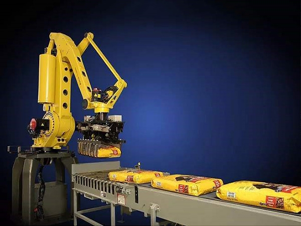 碼垛機(jī)器人是一種專業(yè)化、集成化、智能化的工業(yè)設(shè)備,機(jī)器人將包裝袋或者包裝箱按照預(yù)定的編組方式,逐個(gè)逐層碼放在托盤(pán)或箱體內(nèi)。通常作為包裝線的后續(xù)設(shè)備,提高生產(chǎn)能力和轉(zhuǎn)運(yùn)能力。機(jī)器人自動(dòng)碼垛生產(chǎn)線一般包括四自由度碼垛機(jī)器人(或六自由度碼垛機(jī)器人)、全自動(dòng)托盤(pán)庫(kù)、智能待碼機(jī)、智能重量復(fù)檢設(shè)備、智能金屬檢測(cè)設(shè)備、自動(dòng)倒袋設(shè)備、自動(dòng)整形設(shè)備、自動(dòng)輸送設(shè)備、自動(dòng)封口設(shè)備等。