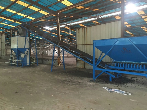 燃煤專用包裝機為型煤,潔凈煤,塊煤,煤球,潔凈型煤,燃煤等物料的定量包裝而設(shè)計。型煤包裝機采用皮帶輸送機給料,物料通過皮帶輸送機進入緩沖料倉,再經(jīng)過皮帶給料自動控制物料輸送到稱料斗。通過變頻二段速控制給料量,稱料斗一旦到了預(yù)定重量停止供料。雙秤交替稱重。人工輔助夾口袋。料箱物料迅速落下,其夾袋器通過控制系統(tǒng)打開,料袋通過輸送帶送走,經(jīng)立柱式縫包機封口。